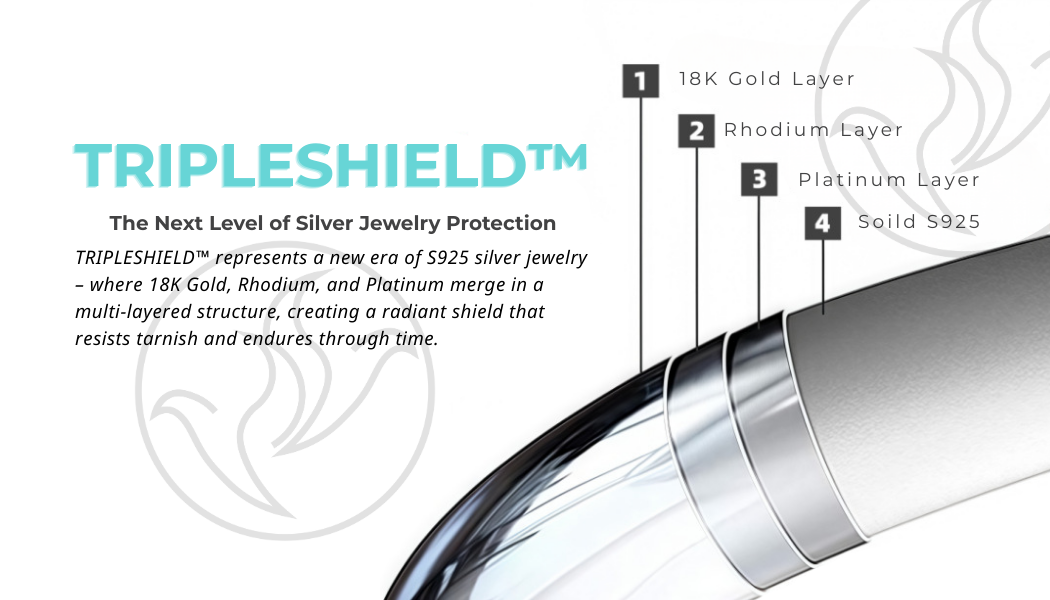 Mỗi sản phẩm TRIPLESHIELD™ được gia cố bằng ba lớp quý giá trên lõi bạc nguyên chất (S925):